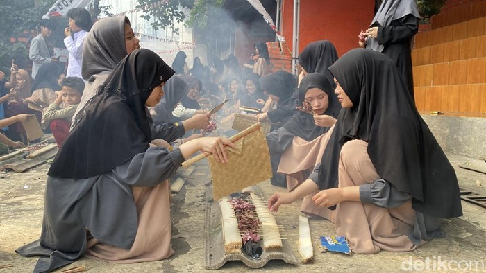 Sukabumi – Asap tipis mengepul dari panggangan yang terbuat pelepah pisang. Panggangan tersebut membentang sepanjang lebih dari 100 meter di halaman Pondok Pesantren Dzikir Al-Fath, Sukabumi.